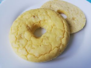 - Se pune compozitia in forme. Tava mea este pentru 4 bagels. Din acesta compozitie ies 2. Formele ramase le umplu pe jumatate cu apa.