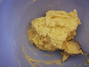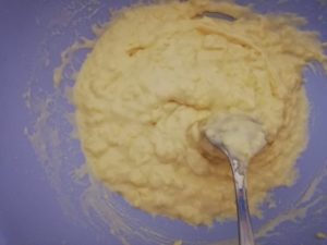 - Rezulta o compozitie legata si cam tare. Se adauga apa pana se obtine consistenta ca de briose.