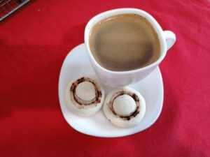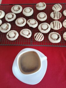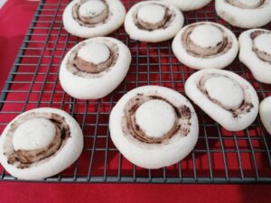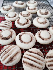 - Capul de la sticla se da prin cacao si se apasa cu el in centrul bilei, formandu-se astfel ciupercuta! 🙂