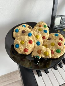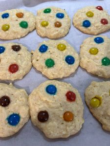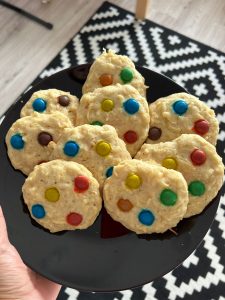 A venit, a venit toamna – vorba cantecului! Am scos vedeta toamnei la inaintare! E drept ca piticul a cerut biscuiti cu M&M’s, dar spiritul meu creator matinal nu m-a lasat. A fost musai sa-l ascult! Iar ca sa impac piticul, am pus si niste bombonele colorate pe deasupra, ca sa fie chiar un desert neserios 🙂