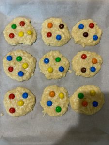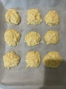 - Cu o lingura am luat compozitie si am pus in tava cu hartie de copt.