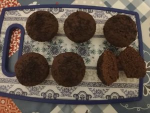 Piticul mananca banana zilnic. Motiv pentru care am renuntat la a o mai adauga in checuri si prajituri. Se intampla insa sa nu manance toata banana si sa ceara alta, si asa ma trezesc cu 2 sau 3 banane pe care nu le mai mananca. Drept urmare, le fac briose…cu cacao bineinteles. Banana gatita imi place mai putin, dar cacaoa o mascheaza foarte bine. Rezultatul – niste briose usor umede si moi. De obicei nu le pun zahar, daca bananele sunt suficient de dulci. O mana de stafide hidratate pot intregi gustul de dulce, la nevoie.