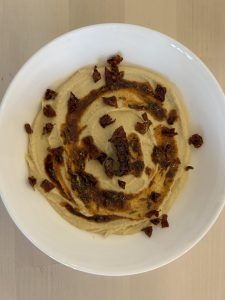 Humusul delicios, bogat in proteina poate fi folosit cu succes la micul dejun sau la o gustare rapida. Exista multe combinatii, fiecare poate personaliza dupa preferinta, aceasta este varianta naostra. Nu intotdeauna folosesc amandoi cateii de ustuoi. Cand fierb nautul sigur pun unul, dar daca burtica este mai sensibila, uneori renunt la cel de al doilea, crud.