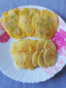 Asa este in bucataria piticului! Culegi de colo o idee, de colea alta. Le pui cap la cap si vezi ce iese. Astazi a iesit bine. Mini-omletele sunt usor de facut, gustoase, servite simple sau impreuna cu garnitura preferata. De data aceasta le-am servit alaturi de cartofi la cuptor. Piticul a fost foarte incantat. Din aceaste cantitati iese suficient pt un pranzulet in familie. Super gustoase!