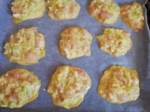 - Se da tava la cuptorul preincalzit la foc mediu si se coace aprox 20-25 minute. La jumatatea timpului se intorc mini-omletele.