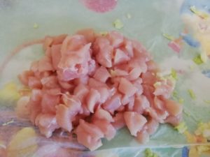 - Carnea se taie cubulete.