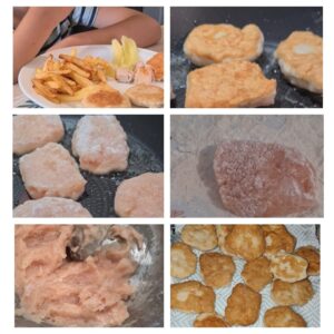 - apa rece pentru modelat si faina pentru „pudrat” nuggets-urile