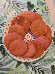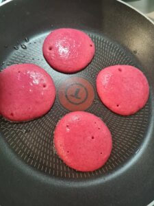 Ce faci cand ai o sfecla rosie mai mare? Briose si pancakes. Briosele sunt oricum un mare hit, clatitutele pancakes sunt o noutate. Super bune! Cu paf de copt, nu bicarbonat, ca nu-l suport! Rapide si gustoase! Pudrate cu zahar sau simple, servite la masa pricipala, asa suntem noi, mai ciudatei 🙂