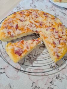 Cea mai buna pizza ever. Nu stiu cum va place voua, dar noi mancam cu drag pizza cu blat consistent, pufos, painos cum ar zice nii. Poate si din cauza ca ducem, fara sa ne dam seama, dorul painii. Aceasta este pizza pe care piticul o cere in fiecare aptamana. Singura variatiune este cantitatea de cascaval sau branza pe care pun, incarcatura cum s-ar zice 🙂