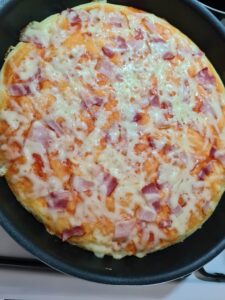 - Toppingul: telemea, cascaval, ketcup, bacon