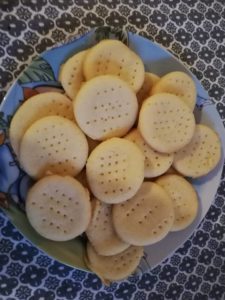 - Se coc la cuptorul preincalzit la 180 de grade aproximatic 20 de minute. Cand sunt calzi sunt moi si sfaramiciosi, se intaresc la racire.